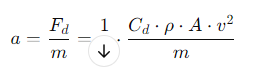 Cd é o coeficiente de arrasto, que pode variar com a velocidade do projétil,
